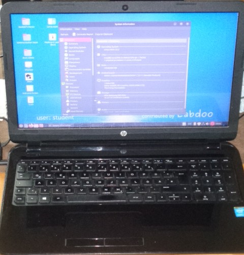 Reparatur und Ersatzteile (Tastatur, CD/DVD-Laufwerk) vom Labdoo.org e.V. (Batterielaufzeit in % / condition, nicht Minuten)