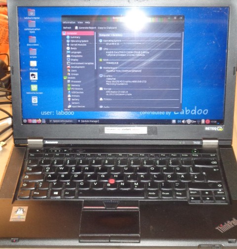gespendet von Lisa K., vielen Dank. Reparatur und Ersatzteile (Akku und Monitorpanel) vom Labdoo.org e.V.