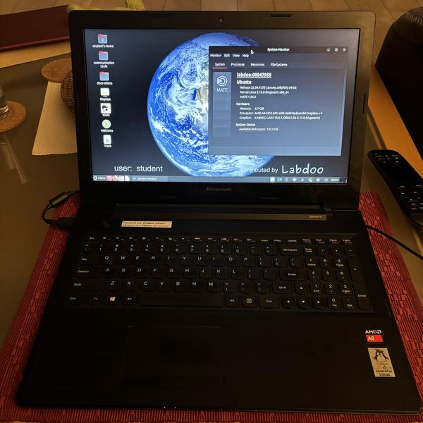 Gespendet von Ankur M. aus Bremen, vielen Dank! Reparatur und Ersatzteile (Festplatte, Monitorpanel und Akku) vom Labdoo.org e.V.